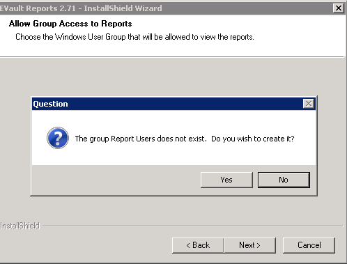 Unless EVault Reports has already been installed you will get the following prompt. Select Yes twice to continue with the installation.