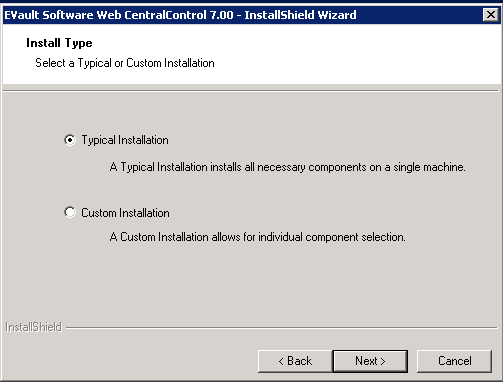 Run WebCentralControl-7-00-1033b.exe. Click Next until you reach the Install Type page.